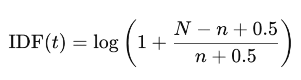 Its convenient to have a lexical score normalized from 0-1. Sadly BM25 scores tend to be all over the place (0.5? 5.1? 12.51?). Fine for ranking. Annoying for other goals. That's why I wrote a post about one way to compute probabilities from BM25. In that post, I allude to one hack that forces BM25 to 0-1. Let's walk through it. A query term’s BM25 score is IDF * TF. Lucene’s TF is already normalized Lucene drops the (k1 + 1) in the numerator of BM25, giving you: Now we’ve got a TF term bounded from 0-1. Nice. Now we’ve got to tackle IDF. Here’s the standard IDF. Here N: num docs in corpus; n: doc frequency of this term. Turns out the max value of this function is log(N). So! just slap a log(N) denominator under that sucker. Now that too has become 0-1. BM25 now ranges 0-1, while preserving in-query ranking. It’s 100% a hack. What’s nice or problematic about this: